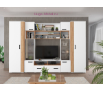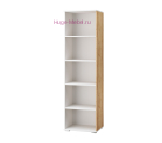 Недорогой шкаф с полками Оскар-18 белого цвета со вставками под дерево. Шкаф входит в серию мебели для гостиной и может быть дополнен секцией для телевизора и платяным шкафом.